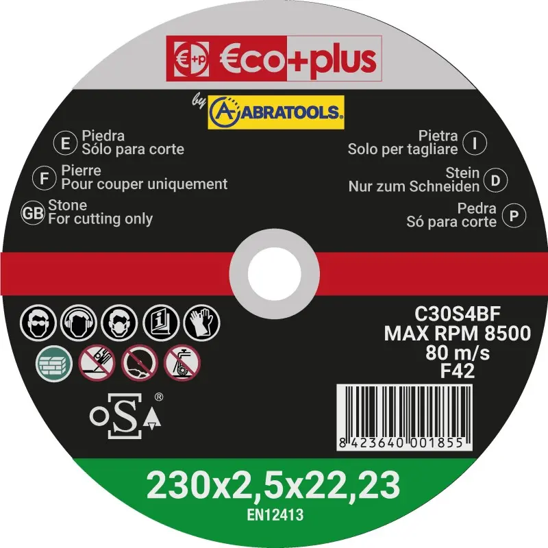 El tipo C30S indica que este disco está diseñado específicamente para el corte de piedra y otros materiales de construcción densos. Su formulación y proceso de fabricación aseguran una alta resistencia al desgaste y a la rotura, incluso bajo presión y a altas velocidades.