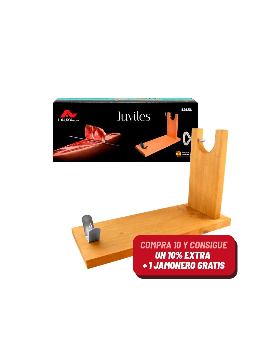 Si buscas un jamonero que combine tradición, funcionalidad y calidad, el Modelo Juviles es la elección perfecta. Disfruta del arte del corte de jamón y sorprende a tus invitados con lonchas perfectas y un sabor inigualable.