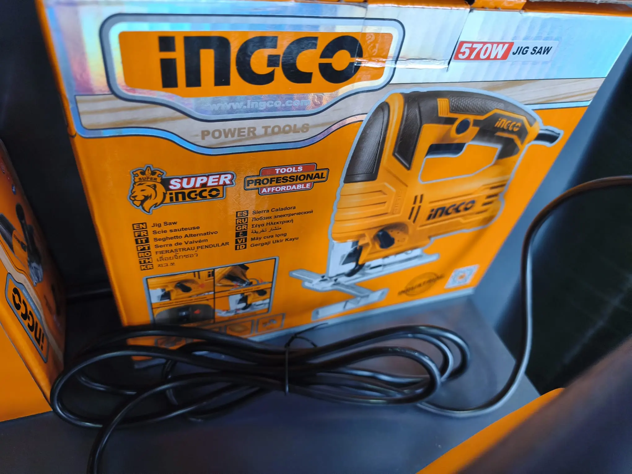 - Potencia: 570W, proporcionando la fuerza necesaria para cortar diversos materiales con facilidad.